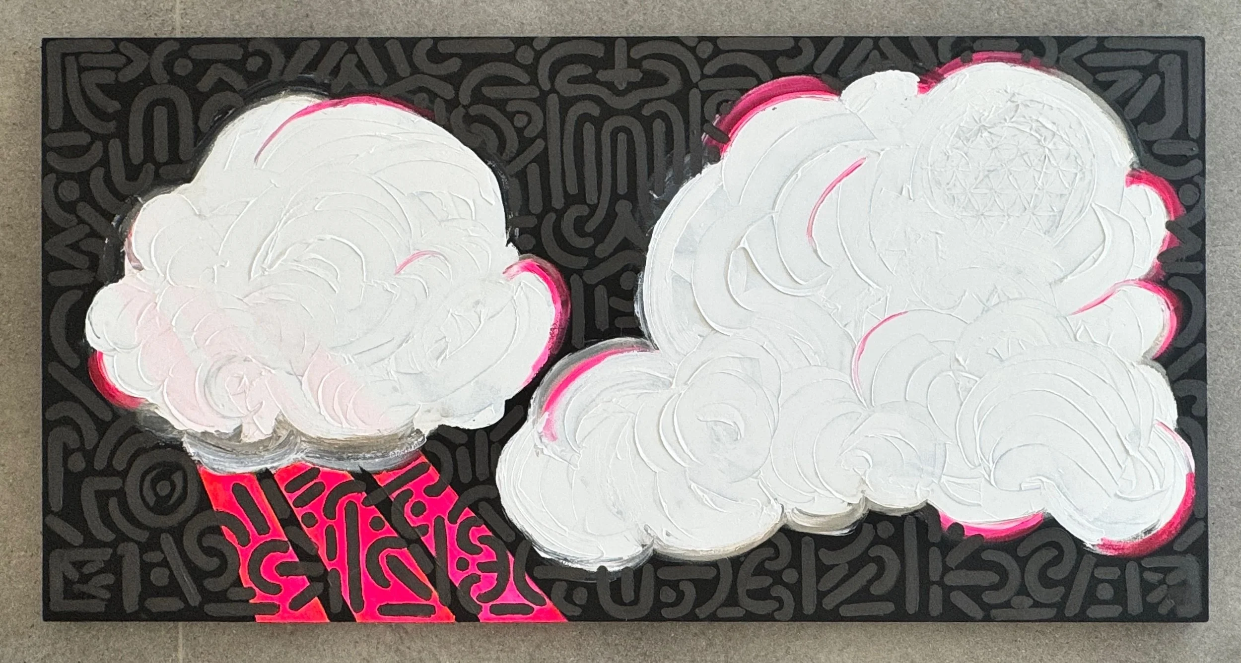 Composed of fragmented downloads from encoded dreams, this piece weaves together vibrant, ethereal languages, evoking a sense of otherworldly connection.